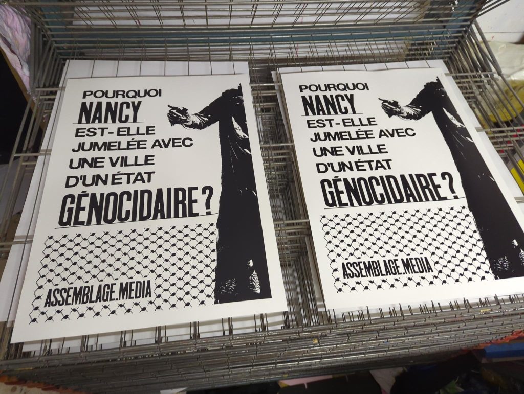 Depuis 1984, Nancy est jumelée avec Kiryat Shmona, une ville israëlienne fondée sur les ruines du village palestinien Al-Khalisah détruit par Israël en 1948. Bien qu’une commission d’enquête de l’ONU ait reconnu le génocide perpetré par cet État dans un rapport du 16 septembre 20251, les autorités Nancéiennes n’ont jamais remis en question ce jumelage. Nous tentons de vous expliquer pourquoi les élus n’ont pas été à la hauteur de leur mandat sur cette question internationale, alors que le génocide de la population Palestinienne se poursuit.